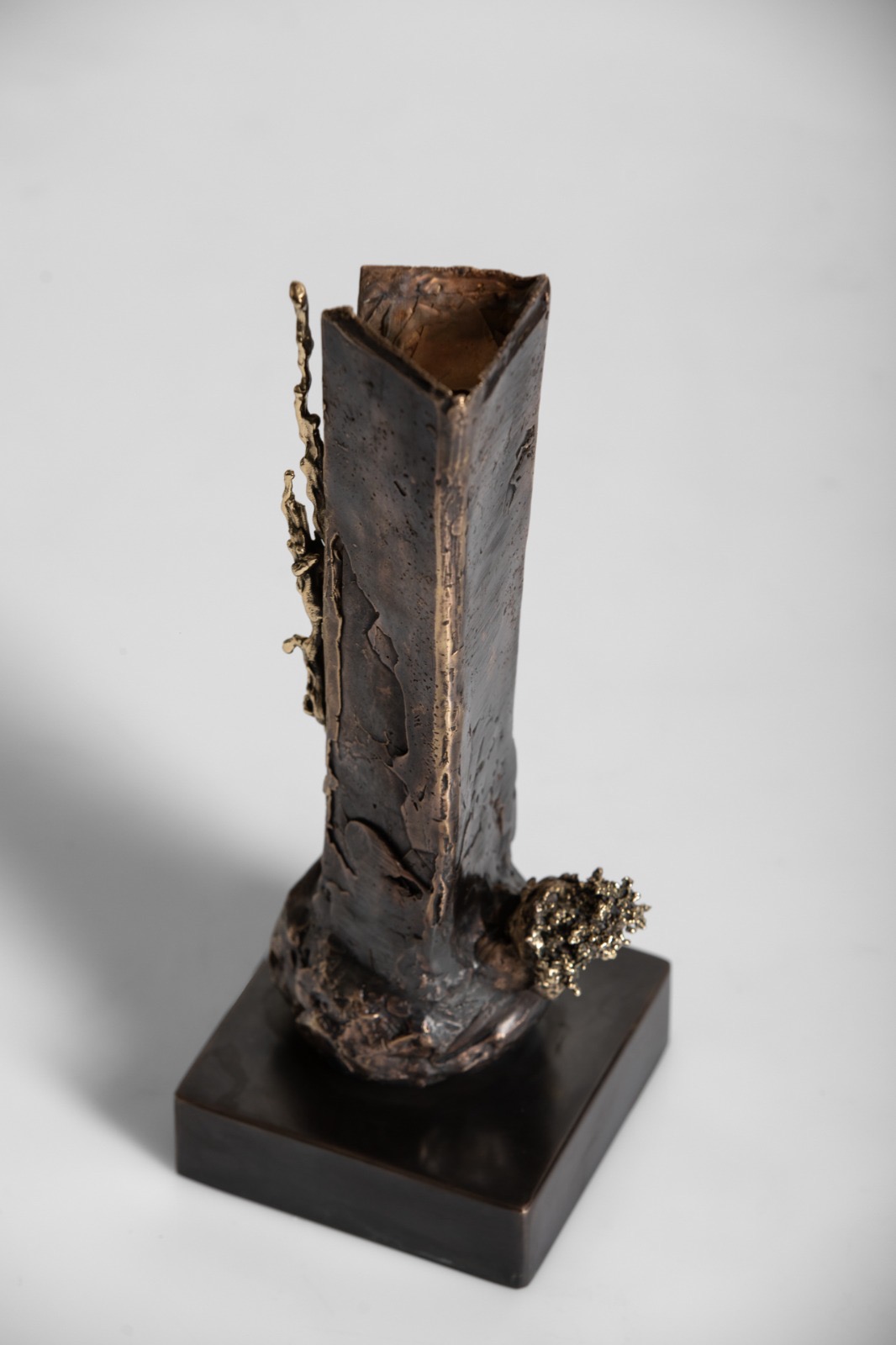 In Stefanos’ practice, conflict is a generative framework that extends beyond human society, encompassing both biological and social evolution. Mirroring the geosphere, where internal chemical or mechanical tensions drive transformation and give rise to new forms, his work positions conflict as a fundamental mechanism of change within natural and cultural systems. Elements of chance and unpredictability, inherent in Stefanos’ process, articulate the productive capacity of internal tension by allowing unforeseen yet controlled interactions between materials to unfold. The sculptures highlight and navigate the internal synergies that formulate their operational and iconographic character. Crafted in wax and cast in bronze, using natural materials such as minerals, glass, and bronze, Stefanos’ sculptures are composed in forms that articulate the dynamics of conflict and collaboration, tension and release. Through this practice, he opens a conversation that can be sustained through creative gestures than language.