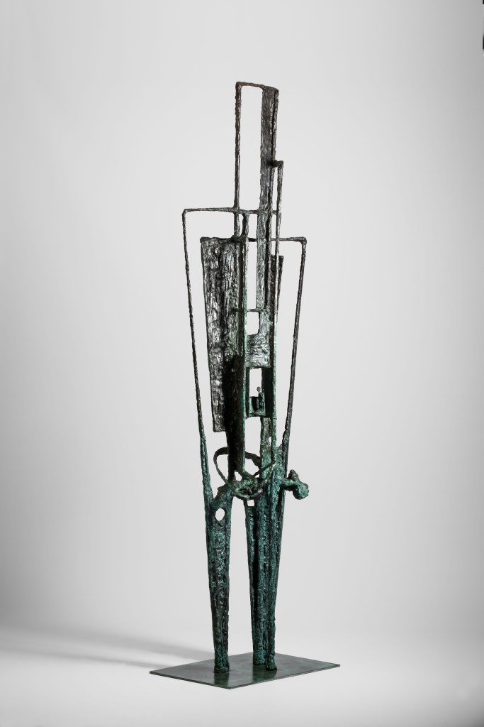 They are primarily freestanding sculptures of medium and large scale, modeled in wax and cast in bronze. They are distinguished by the linearity of the form, the incorporation of ready-made plastic elements, the richly textured surfaces, and the latent repetition of the human figure.